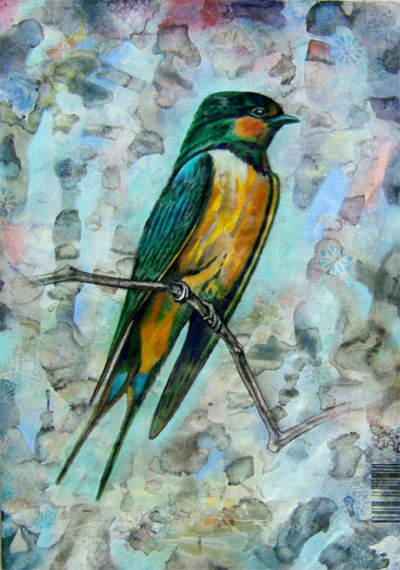 A number of my current artworks stress the use of 2D printmaking and mixed-media techniques in the creation of artworks which evoke the visual environment of interior mental space, something seen within the mind’s eye. I try to imbue many of these pieces with the ambiguous feel of an image forming or dissipating within the mind. Surrounding the central imagery, in softer focus and contrast there usually exists a visual amalgamation of additional images, designs and textures. These surrounding elements are meant to be symbolic, a metaphor for lingering images flowing freely within the unconscious mind - Images that may impress or inform but which are not fully revealed to the conscious mind.