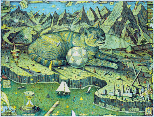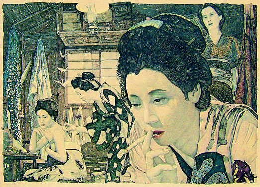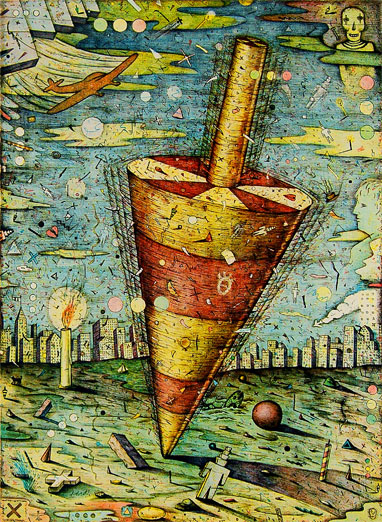 Mr. Sugarman is primarily known as a printmaker. He is best known for works that include printmaking, but are non-the-less one of a kind mixed-media artworks. Those works often include some traditional media such as ink wash and painting. His edition prints by contrast are not one-of-a-kind. They are hand printed through the use of traditional printmaking media such as intaglio, serigraphy, relief and lithography.