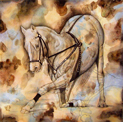A number of the works in this section are meant to praise the metaphysical beauty of nature while making a visual and conceptual statement concerning the innate elegance and majesty of one particular aspect of it. Other works from this section are presented as social commentary. For example in the work “Bow”, an ethereal horse bows down before mankind, the caretaker of animals in biblical mythology. As he bows down to us, do we feel worthy of this respect? I believe that, religious or not, some of us feel guilty of having failed in our roll as caretakers of nature. The allegorical works in this section are often narrative and use animals to stand in for people in making statements concerning human nature.
